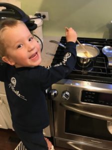 Patch implemented a routine in our house called sous chef. Essentially, each weeknight one of the kids is assigned to function as my sous chef for the evening. It is noted in our Google calendar. So, when I am prepping dinner, I can pull up the calendar and see that Noah or Abbie or Eleanor or Maddie is my sous chef for the evening. (Elliot, on the other hand, hangs out near me, opening the oven door, dumping containers on the counter, pressing any electronic buttons he can find. Quite helpful.) 😉 Some nights, I don’t have much to prep or I’m in a big hurry, so I don’t call on them. Others, I’ll yell, “Noah, you’re sous chef, come and help me!” Usually, he is more than happy to assist. This does not always speed up the process of dinner making. But, I do know how important it is for their futures. So, I do try to include them.